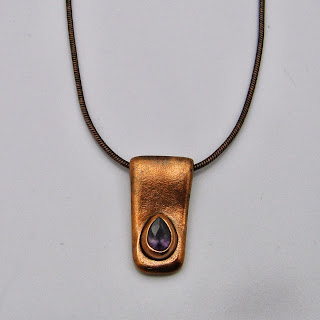 Copper Free Form Pendant with Purple Teardrop CZ Handmade Necklace